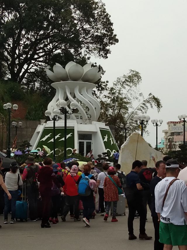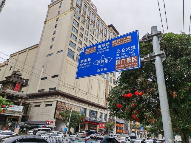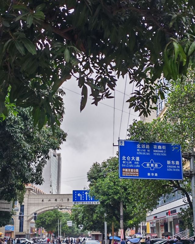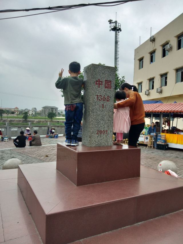 巍巍国门耸立在北仑河的岸边,庄严肃穆,五星红旗高高飘扬宣示着主权。口岸的对面仅仅100米的距离就是越南芒街,中越友谊大桥把两个国家相连。在河边有一块大清国五号界碑,碑上中间刻有:“大清国钦州界”,现在的它已不再是真正的界碑,屹立在边防线成为了文物。因边贸的繁荣带来城市的繁华,每条街,每幢楼看上去都很新,根本就找不到古城的遗迹。街道两旁商铺林立,特产琳琅满目,我们在街上漫步,行人络绎不绝,绿色帆布帽子、尖顶白色帽子……不出国门就能领略异国他乡的文化和风情。当然,我更喜欢早上街道,没有了人声鼎沸还给了这里最初的模样。