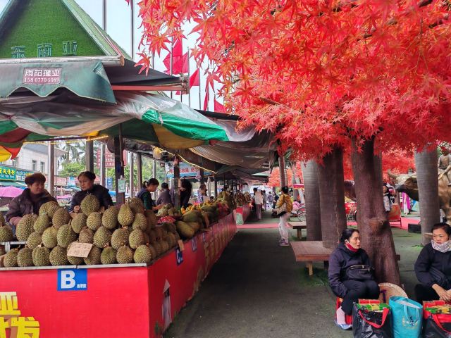 但是时间有限的我们并没有过关~在这里,中越之间的距离,就是这么一条不足50米的狭窄小河~口岸附近的街道~纵情enjoy热带水果的盛宴~~~小木菠萝10元一个~毛荔枝大约4~6元/斤~~几乎整条街都有的猫山王榴莲和金枕榴莲,但是据说只有公称处那边的称是准的,当然公称处的价格听起来也会贵几块……