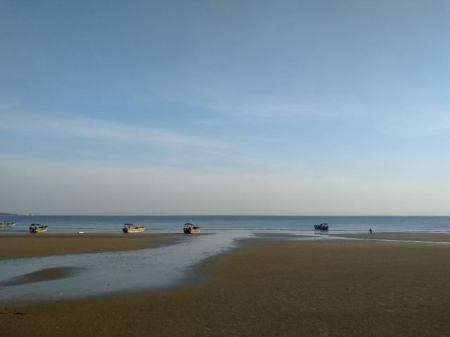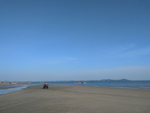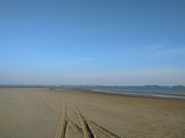 5分 超棒1-26自驾去的,可以把车停在海堤坝上。天气非常好,海风也不大。沙滩很大也很干净。人不多,沙很细,海水波光粼粼。一波波海浪轻轻的拍打沙滩,产生独有的波浪声,平整的很多长长小海螺,就是海水没有那么清澈。不过总体我觉得非常舒服。
