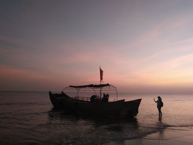 酒店出来5分钟就到海边,早晨,日出的时候沙滩还见到一些生活垃圾在沙滩上感觉这里再不保护一下可能就不行了吧。运气一般没看到很美的日出,但是有幸还是看到了,一丁点日出啊。