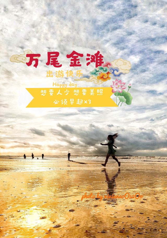 5分 超棒相对比前两年,万尾金滩水质有了明显的提高,遇到天气好,晚霞很是漂亮的。每到旺季全国各地的游客涌入金滩海边观赏,阳光照射在沙滩线上,形成了一道美丽的风景线。开车行驶在金滩边上,闻着周边海鲜的香味,欣赏着晚霞,海风掠过,确实让人心生涟漪。
