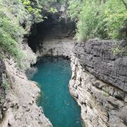 桃花水母第二天窗位于都安瑶族自治县,这里地下暗河相通,溶洞遍布,潭水清澈,地上的喀斯特地形非常壮观,吸引了众人前来游玩。
