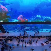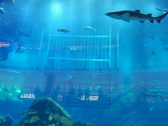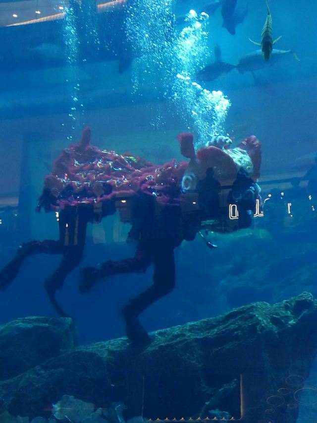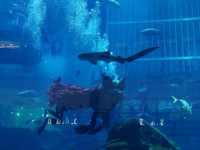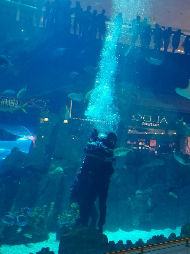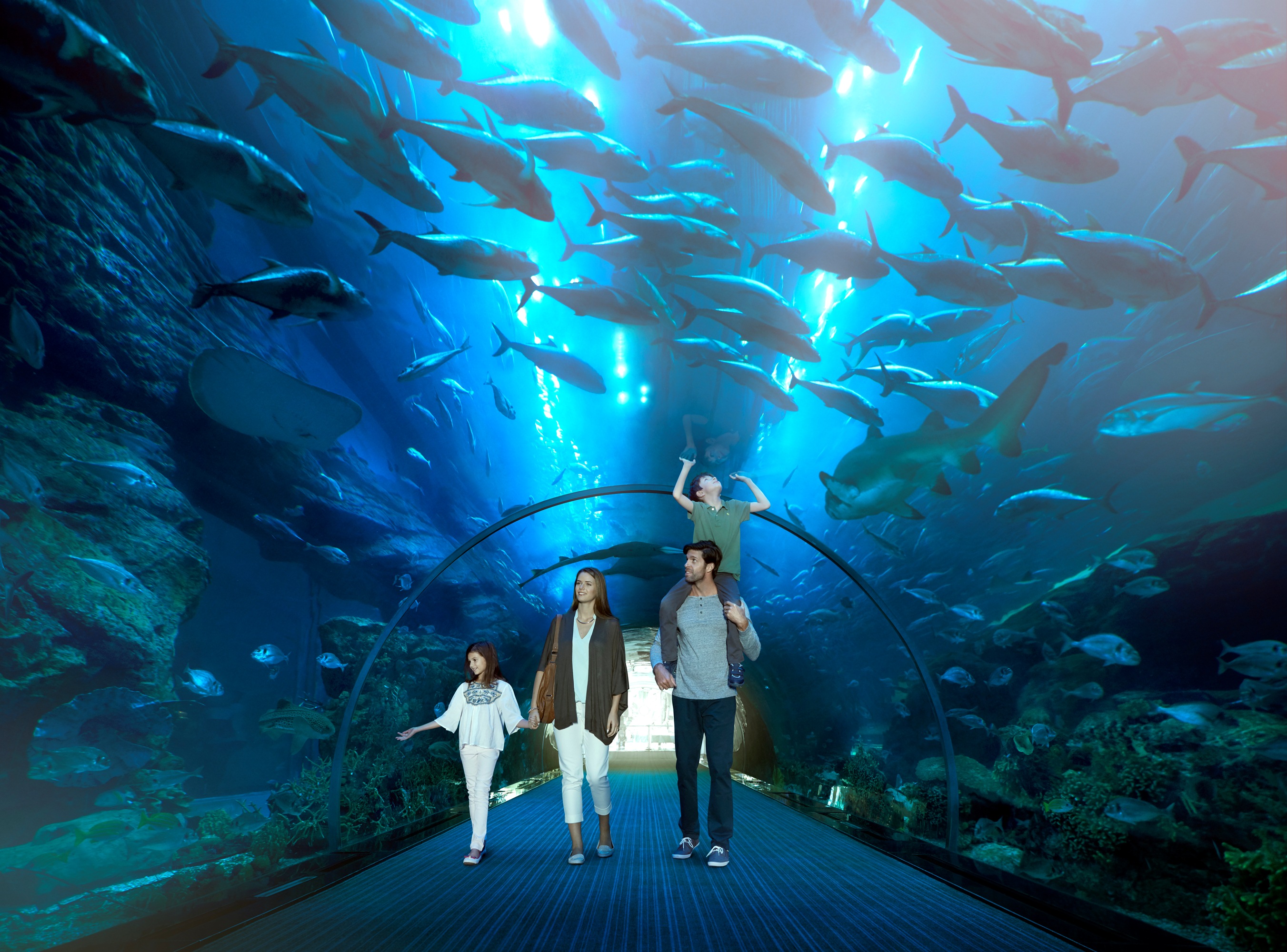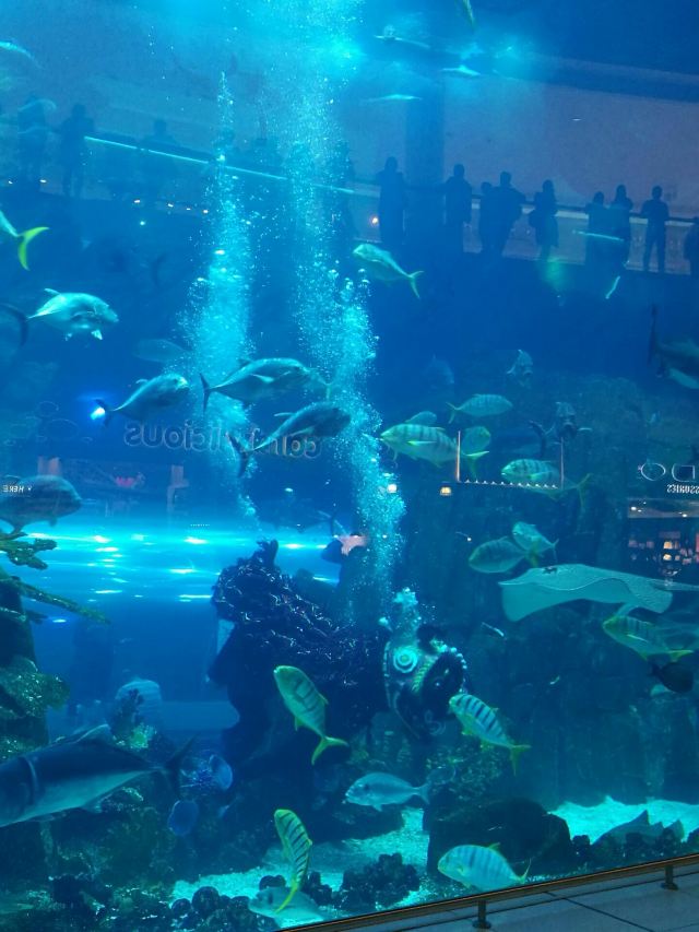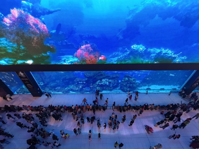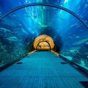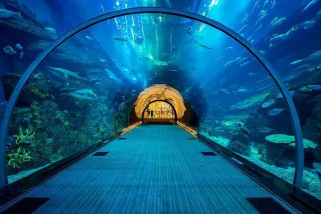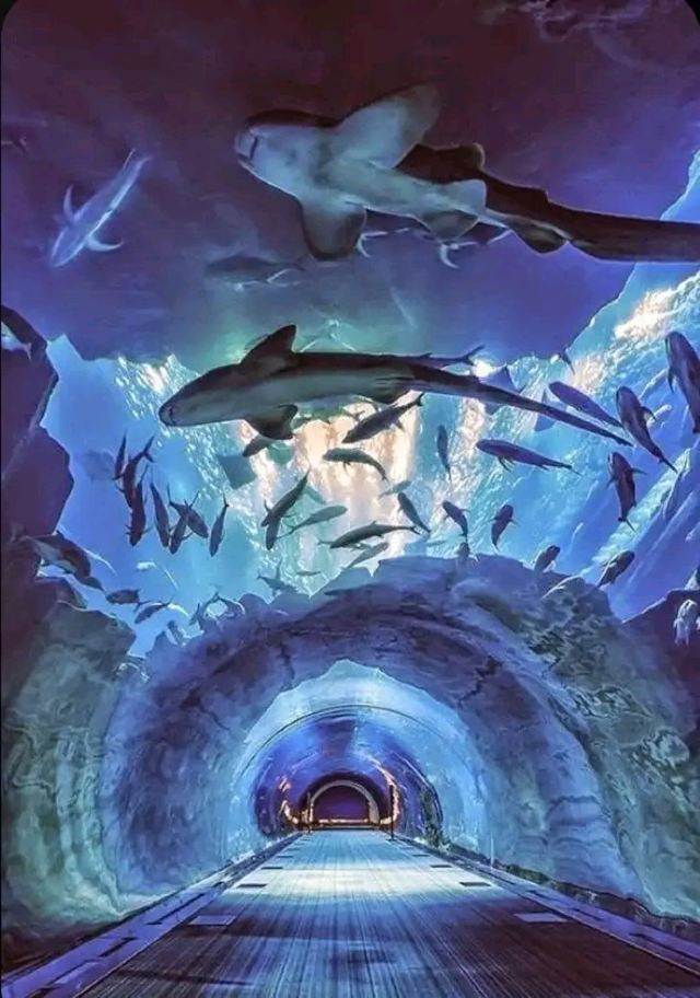 △ 独特的水下隧道:迪拜水族馆和水下动物园的一大特色就是其非凡的水下隧道。游客可以穿过这条由透明亚克力制成的隧道,周围环绕着令人难以置信的在其上方和周围游动的海洋生物。这提供了与海底世界令人惊叹的近距离接触。