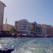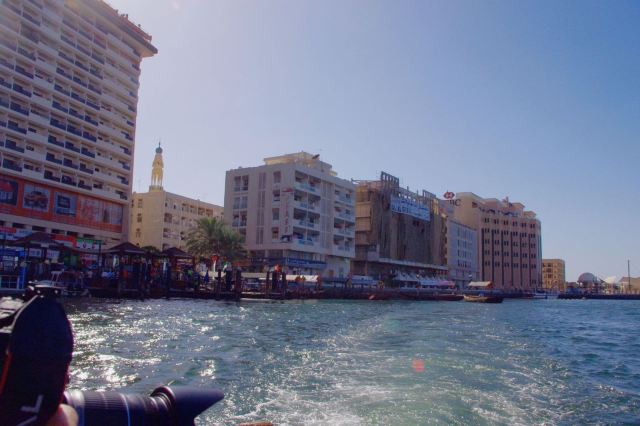 迪拜河约10公里长,它将迪拜这个城市一分为二,河的西南边是新兴的Bur Dubai区,河岸边林立着现代高楼大厦,玻璃幕墙在阳光下闪闪发光,其中比较高的大楼是电讯大厦。而另一边是象征着迪拜历史的旧城区Deira,传统的风塔、及各种琳琅满目的集市。
