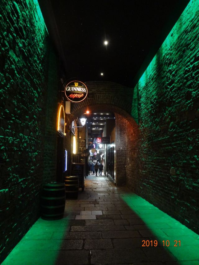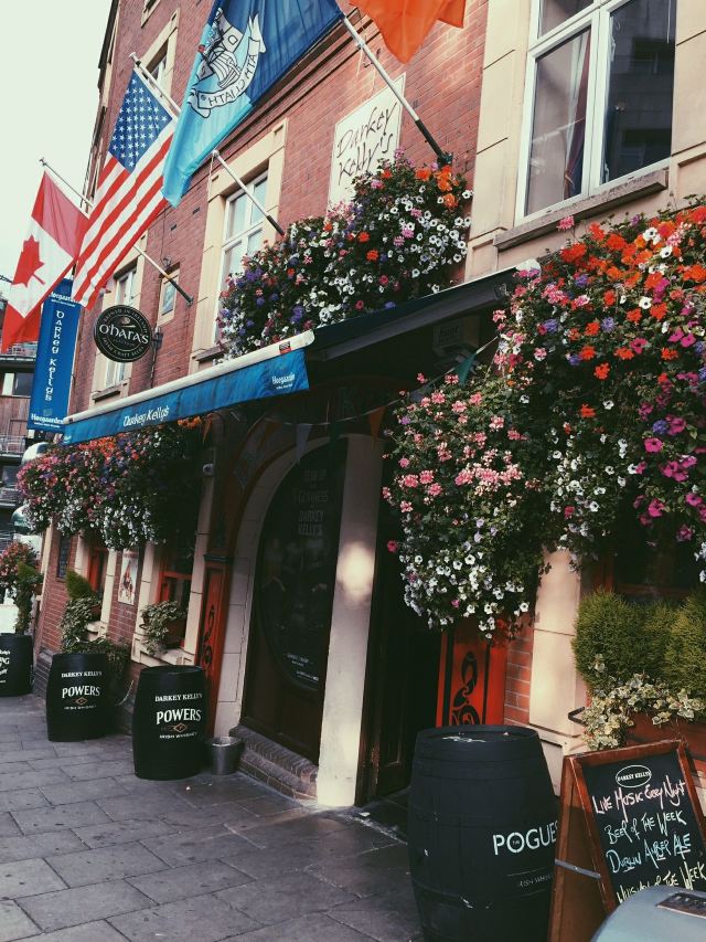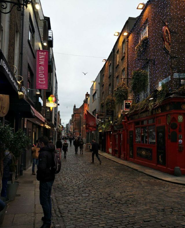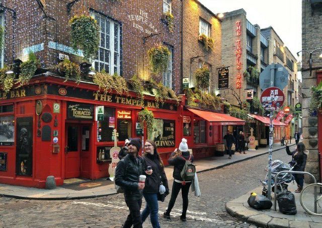 坦普尔酒吧区是都柏林夜生活的腹地,在交错的石板路两旁,各具特色的酒吧摩肩接踵,地道的健力士黑啤、百利甜酒以及威士忌对到此来访的酒徒们充满着巨大的诱惑力。即便不是那么热衷于酒精,多少也得来一杯,才不枉到此一游。在这里,拥有一切你能想象得到的关于酒吧的元素,另类的电子音乐、嘈杂的觥筹交错声、专门用来高谈阔论的盖尔语,就连游走在街上的氤氲都会因为酒精的挥发而产生微妙的气味。