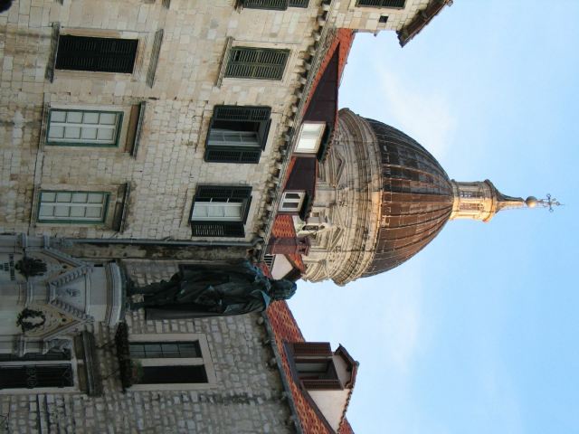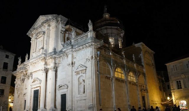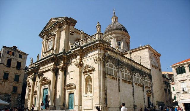 杜布罗夫尼克主教座堂于17世纪末18世纪初修建而成,这座教堂在历史上被损坏过很多次,经历过战争人为的损坏,也经历过地震的打击,但至今仍然矗立在杜布罗夫尼克。现在的教堂整体建筑为巴洛克风格,外观看上去雄伟壮观、古朴厚重,建筑上端周边雕有许多传说中的人物雕像,令人印象深刻。