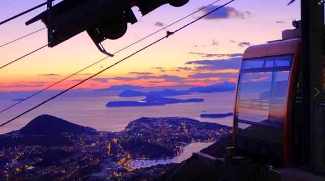 Srd山顶是观赏杜布罗夫尼克美景的好地点,这里的缆车是必玩项目,缆车修建于1969年,海拔405米,缆车从山下到山上共778米的距离只需行驶不到4分钟。壮美的景色令人心旷神怡,城市全貌以及远处的小岛尽收眼底。
