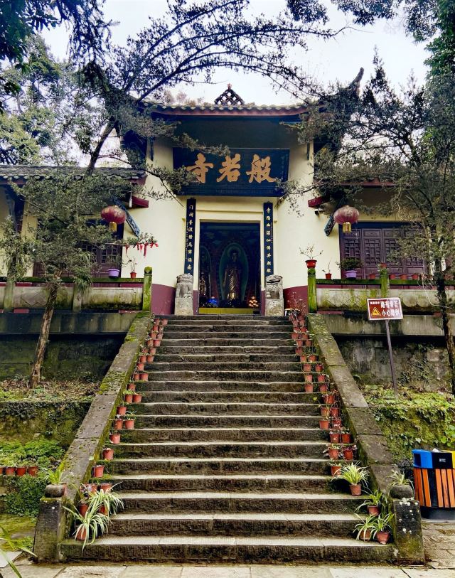 般若寺占地300余亩,寺前松竹参天,浓荫夹道,清幽静谧。寺前后丘顶上各有一亭,故称“般若迎松风”。寺址在两山合抱之中,依山势而建,前后四殿一殿高过一殿,寺内有客房舍数间,清洁幽静,翠帐映窗,俯临清谷,游人住此尘念顿消,心舒气适。