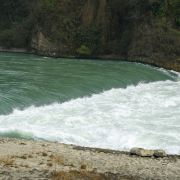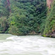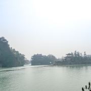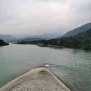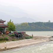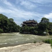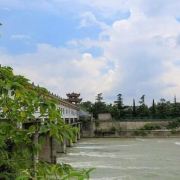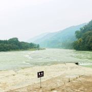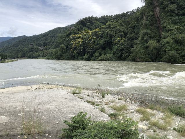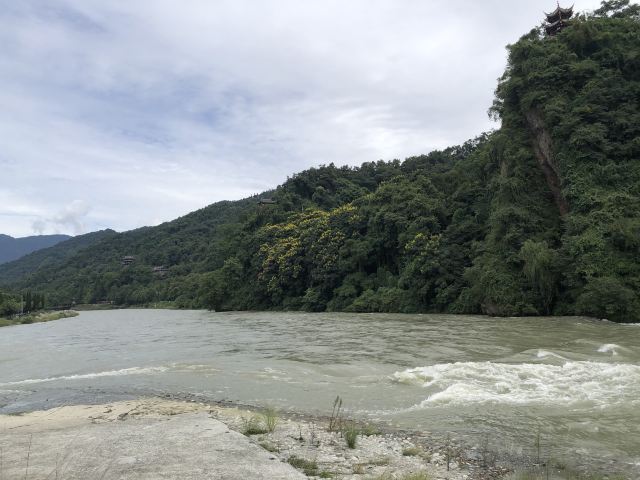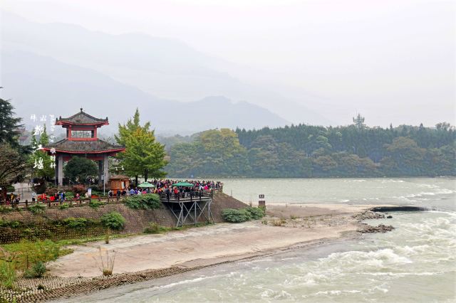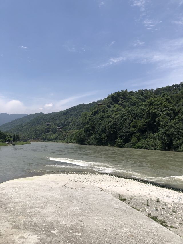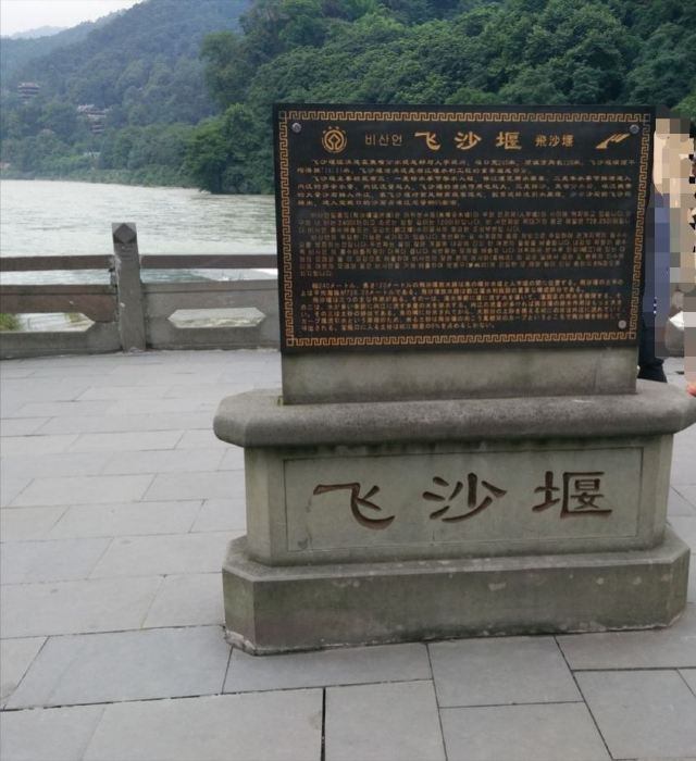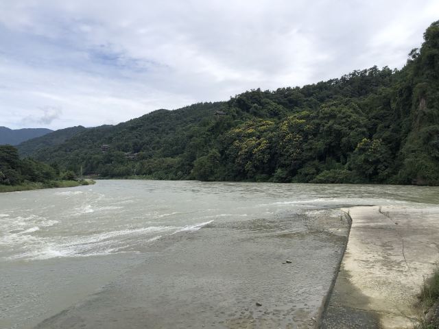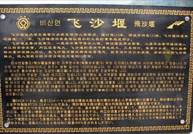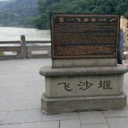 5分 超棒在都江堰景区离堆公园西侧过桥跨过内江向右就是飞沙堰,这也是都江堰水利工程三大件之一。在飞沙堰向东望,内江对岸就是宝平口和离堆。飞沙堰又称 “泄洪道”、“减水河”。这个有点倾斜的堤坝修在离堆之侧、金刚堤末端,按一定高程(河床到河面2.15米高)由南向北开一道200余米宽的口子,具有泻洪、排沙和调节水量的显著功能。 作为都江堰三大件之一的飞沙堰,古时是用竹笼卵石堆砌的临时工程,即使如今已改用一劳永逸的混凝土浇铸形式,其外观看上去依然十分平凡。其实这飞沙堰的功用非常之大,可以说是确保成都平原不受水灾的关键要害。当内江水量较小时,它拦水进入内江灌区;当内江的水量超过宝瓶口流量上限时,多余的水便从飞沙堰自行溢出,排到外江;如遇特大洪水的非常情况,它还会自行溃堤,让大量江水回归岷江正流。岷江从万山丛中急驰而来,挟着大量泥沙、石块,如果让它们顺内江而下,就会淤塞宝瓶口和灌区。而由于位置设计很巧,飞沙堰具有强大的排沙石能力,能将流入内江的沙石再排除出去,所以称为飞沙堰。
