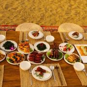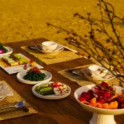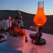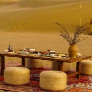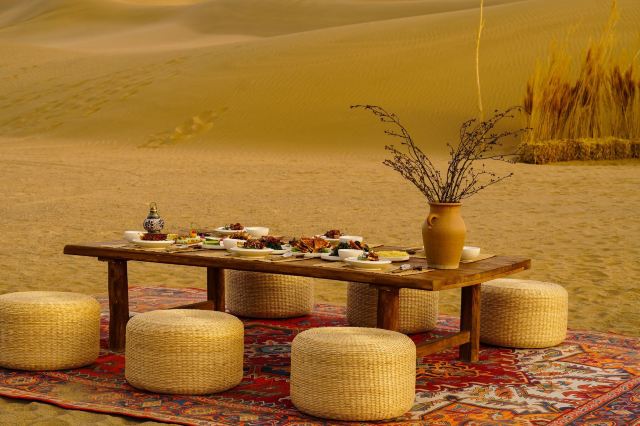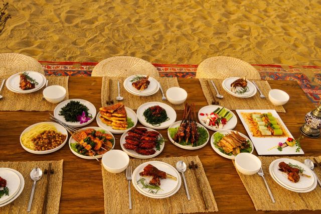 这里,黄沙漫天,却也在这样的环境下,孕育出了一种难以言喻的舒适与宁静。 踏入其中,却是别有洞天。内部布置得温馨而舒适,厚厚的地毯,柔软的床铺,还有各式各样的家居小物,每一处细节都透露着主人的用心。在这样的环境下,我很快就放下了旅途的疲惫,沉浸在了这份独特的舒适之中。 晚餐更是出乎我的意料。在沙漠之中,本以为食物会相对简单,却没想到却能品尝到如此美味佳肴。每一道菜都充分考虑了口感与营养的搭配,既满足了味蕾的享受,又让我感受到了家的温暖。 夜幕降临,沙漠的星空璀璨夺目。我躺在柔软的床铺上,仰望着这片星空。在这里,没有城市的喧嚣与繁华,只有宁静与美好。星星点点的光芒仿佛在诉说着古老的故事,让我感受到了宇宙的神秘与浩瀚。