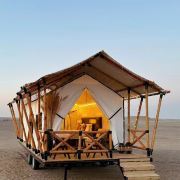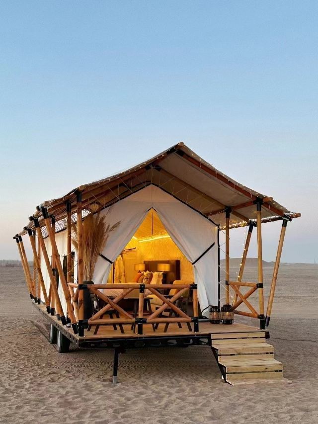 鸣沙山沙漠露营野奢营地投资按照国家标准兴建的集商务、会议、住宿、娱乐于一体的综合性商务沙漠露营基地。