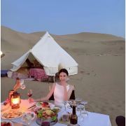 来敦煌就必须体验一下在沙漠里无限畅饮,能放开的去吃吃喝喝玩玩,还能体验沙漠越野摩托车。还有沙漠晚宴,一款高端深度,很有感觉的沙漠晚宴,这家露营服务很好,会介绍朋友过来的