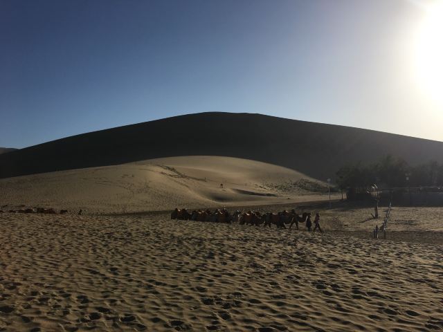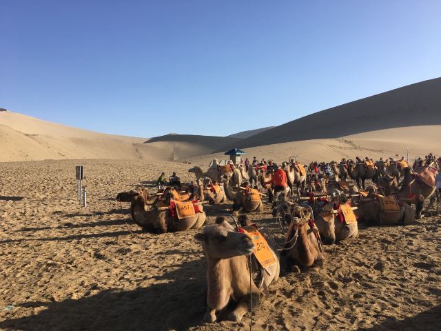 游客进入景区后,游客可以直接爬上鸣沙山,欣赏完景色后,选择滑沙下山。当你从山顶下滑时,会听到“咚咚咚”的响声,似敲锣打鼓,让人胆战心惊又颇感刺激,鸣沙山因此得名。