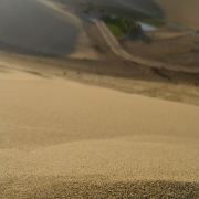 虽然历来水火不能相容,但是月牙泉却安然处在这一片沙山之中。月牙泉位于鸣沙山下,处在沙丘环抱之中,因为地势的关系,刮风时沙子不往山下走,而是往山上流动,所以月牙泉永远不被沙子埋没,被誉为“沙漠之眼”。