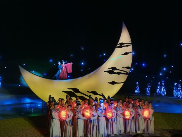 沙漠实景演出《敦煌盛典》全方位带你体验敦煌,深度了解莫高窟,通过借助鸣沙山月牙泉的大漠黄沙及敦煌山庄辉煌汉唐建筑群等实景,再造包裹式洞窟、月牙泉等舞美场景。独创360度旋转可前后移动观众席,全新运用墙体秀、裸眼3D、全息影像等现代舞美前沿科技。再现古丝绸之路重镇敦煌历史文化与人文风貌,让观众穿越时空隧道,领略两千多年前敦煌的文化气息。整场演出气势恢宏磅礴、场面奇幻绚丽,情节扣人心弦,视觉美仑美奂。