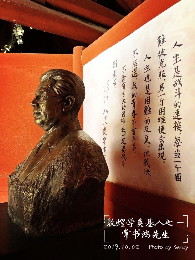 敦煌研究院院史陈列馆馆内设敦煌艺术研究所、敦煌文物研究所、敦煌研究院、张大千展室以及敦煌研究院创始人常书鸿先生故居,以实物、历史照片、专家手稿、出版物、绘画复制品等展现了敦煌研究院60多年几代人无私奉献、艰辛创业的历程,以及莫高窟保护、研究、弘扬所取得的丰硕成果。