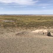 汉长城的地势还是很有眼光的,一边是平地戈壁,另外一边就是古疏勒河的河谷,偶尔还能看到水,对于军事来说倒是有守备的必要,边上还有一个烽火台的遗址,应该也是战略要地的证明。