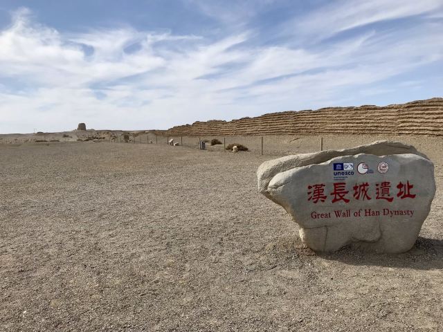 5分 超棒整个玉门关景区其实就像是一个村办的景点,当然非常的大,三个景点之间的距离非常的远,必须要乘大巴车,汉长城遗址算是近的一个了,从售票处乘大巴第一站就是这里,下车就能看到一段连续的城墙遗址,被风化成凹凸不平的造型。汉长城不同于大青砖铺就的明长城,汉长城主要就是用泥土混着草根在一起建的,放南方分分钟就垮了,但是西北环境干燥所以很好的保留了下来。