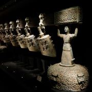 乐殿博物馆馆藏汉代乐舞俑基本为陶制,其艺术特征为取大势、去繁缛以及高度概括的表现手法,整体古朴淳厚、雄浑大气。经历沧桑岁月,依然挥洒着蓬勃的生命力。唐金乐舞俑则是唐代乐舞与金银器制作工艺结合的艺术高峰。其中一座金制反弹琵琶,生动刻划出唐代乐舞的高超水平,具有极高的历史、艺术和科学价值。这些珍贵的艺术藏品,将汉唐乐舞盛世浓缩于乐殿博物馆中,辅以现代科技和多媒体演示,重现一个中国古代音乐殿堂。