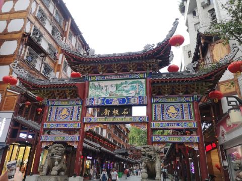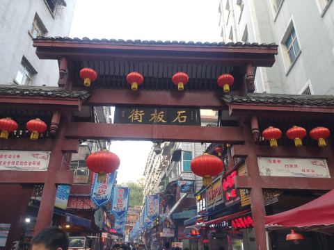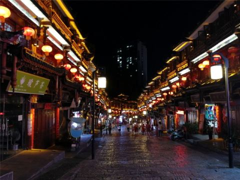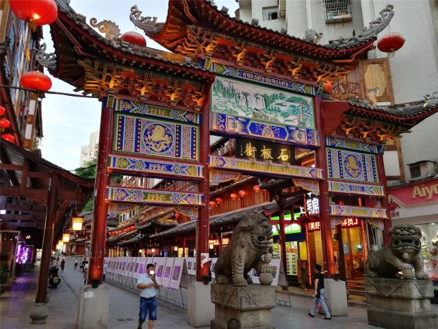 石板古街始建于明代,街长330米,共有街坊88间,街房建筑黛瓦红柱,朱壁花窗,高低错落,层次分明,古朴典雅,是市区保留较为完整的古建筑群。目前已开辟为旅游商品一条街