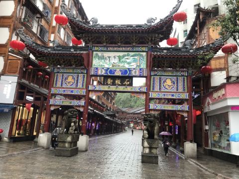 5分 超棒石板古街位于贵州省黔南布依族苗族自治州都匀市广惠路中段的斜坡上,始建于明洪武年间,也就是1368年——1398年期间。