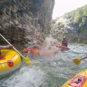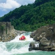 洛北河漂流全长12.48KM,水流湍急、汹涌澎湃、浩浩荡荡、无比刺激,此外还配备了业内专业救援队,确保漂流在刺激的同时也能做到步步安全。