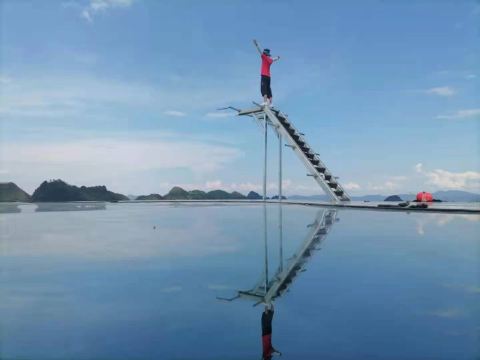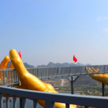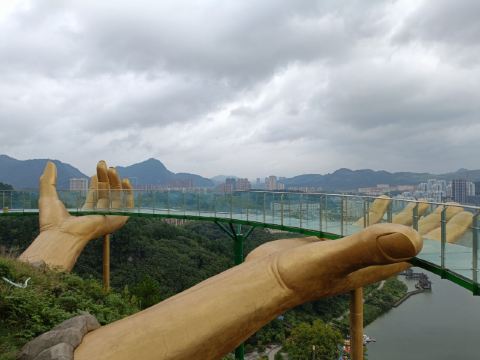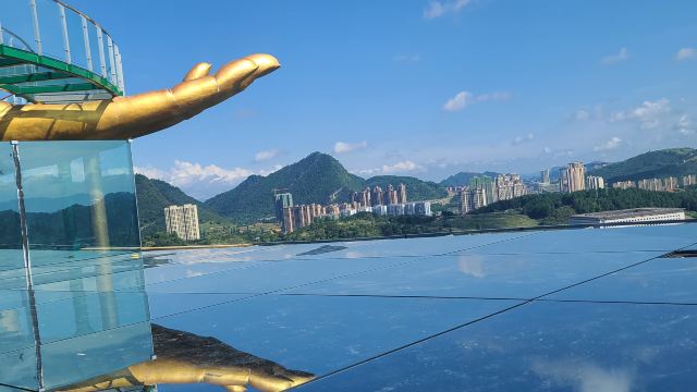 景区内还设有“大地之手观景台 、7D玻璃桥、空中玻璃滑道、高空滑索、树冠廊桥、鸟艺表演”等多个体验项目,增添了景区的体验性,不仅可以观赏到湖光山色,更能体验网红玩法。其中7D玻璃桥全长288米,高108米,采用7D碎屏、裸眼全息、群龙追踪等前沿互动科技,目前在全国玻璃桥中属于前沿技术。