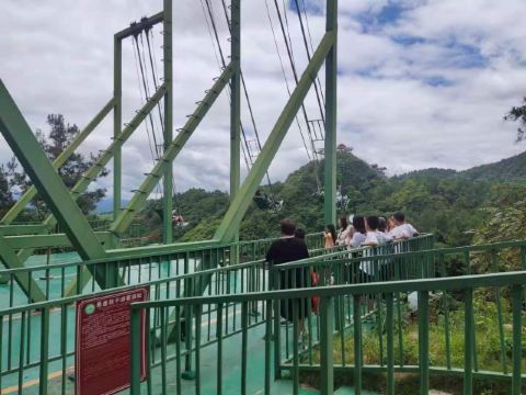 5分 超棒杉木湖公园绝对是你唯一去过了不会后悔的地方,去过还想再去第二次的地方。一进去就为茂密的植被所惊叹,仿佛进入一个原始大森林。如果难得等山就花十块钱坐飞天魔毯上去,下面的美景尽收眼底,是一次美好的体验。里面有很多项目,有惊险刺激的悬崖秋千和高空溜索,绝对让你享受尖叫的感觉,如鸟儿飞翔在空中拥抱自然的欣喜。有绝美的爱丽丝梦游仙境,感觉又回到了童年,里面烟雾缭绕下,美景如梦似幻,宛如置身于仙境,凉爽宜人,想永远停留在这绝美的仙境。大地之手,天空之境,堪称奇观,你会为这独特的创意而惊叹。还有树冠廊桥适合带小孩子体验一回,走在树冠上,穿梭在丛林中,你会体验一把电影里英雄侠客在丛林飞跃的感觉,也把自己想象成林间的精灵。那种欣喜愉悦的感觉无以言表。从廊桥下去就是温柔的鹿苑,一只只温柔的小鹿在鸣叫,忍不住去摸它,性情柔和,不排斥你去亲近他们,他们是大自然馈赠于人类的礼物。激起人类心底那善良的保护欲。里面的收费不贵,每一个项目三十块钱,属于能承受的范围,每人交180就可以玩所有的项目。值得去体验。会让你尽兴而来,满意而归。出大门还可以游览杉木湖,宽阔的湖水,清澈见底,明媚如镜,还可以在湖心长廊走走,拍照。