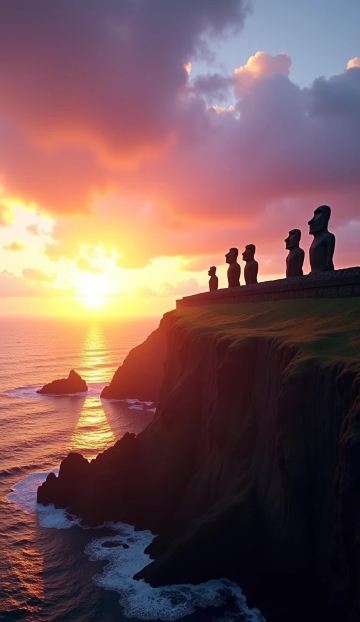 摩艾石像是用巨大的岩石雕刻而成,部分石像高达10米,重量从几吨到几十吨不等。这些石像主要分布在复活节岛的海岸线上,是波利尼西亚文化的杰出代表。