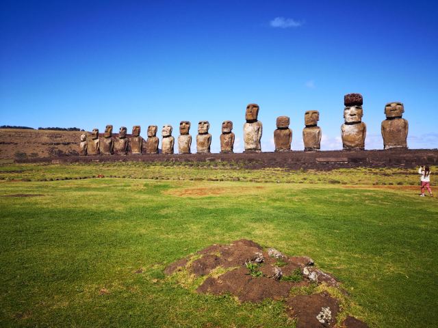 推荐大家如果您只能观看一处摩艾石像,那必须得选 Ahu Tongariki,这是岛上最壮观、最出名、最具代表性的石像群。这里的15尊石像高矮胖瘦各不相同,每一个都是唯一的,或许正惟妙惟肖地还原了原住民的形象特征。除了规模上的优势,位于复活节岛东部的 Ahu Tongariki 还是观看日出和星空的最佳地点,没有之一。当晨光穿过石像间的缝隙,把它们的影子投向远方,这一刻的震撼难以言状,必须身临其境才能感受。