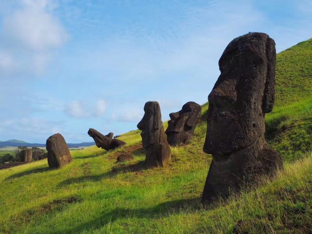 4分 满意#Easter island,复活节岛要从智利首都圣地亚哥,再坐五小时飞机才能到达这个矗在太平洋中间被称为“地球肚脐”的孤岛。这些巨石像有各种形态,有些跪着,有些有眼睛,有些有帽子,有些面朝大海,有些已经破损或者倒塌了...它们背后还有很多关于这座神秘岛屿的故事。