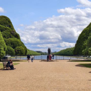 从宫殿二楼眺望,可尽赏西方园林对称之美与四季花卉交替之景,喷泉花园绿树成荫、草坪平整,适合休闲野餐。