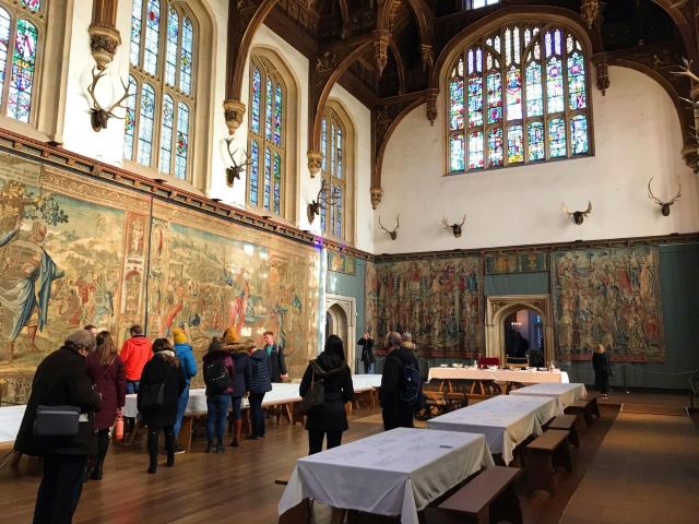- 大厅:宽阔宏伟,饰有精美的橡木浮雕天花板与历史挂毯。
