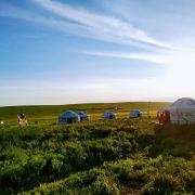 微信小程序乌拉盖草原因乌拉盖河得名,是世界上保存完好的天然草原之一,有“天边草原”的美誉。境内有原始草原、湖泊、芍药沟、黄花沟等独特的草原风光自然景观和布林庙、成吉思汗边墙、固腊卜赛汗国际敖包等历史文化遗迹,还有独特的乌珠穆沁部落民俗风情文化。乌拉盖草原不仅以美丽著称于世,其历史文化资源也非常丰厚。位于乌拉盖管理区的乌拉盖河与其支流色也勒吉河汇合处,是一处闻名的古战场遗址。据记载,成吉思汗在统一蒙古诸部战斗中,就是在这片神奇的土地上,彻底歼灭了曾不可一世的宿敌——塔塔尔部,为统一蒙古大业扫清了一个巨大的障碍。乌拉盖河像长长的哈达飘扬在广阔的乌拉盖草原之上,成吉思汗在这里曾有感而发:“此处造化神功,碧水青山,必成繁盛之地。”美丽的乌拉盖河静静流淌在碧绿的草原上,也勾起了人们无限的遐想,乌拉盖草原也是众多摄影爱好者和影视剧取景的地方,电影《狼图腾》就是在这片草原上取景拍摄的。来到这片广袤神奇的天边草原,除了欣赏原生态的丘陵草原之美,一定要沿着”苍狼之路”去登上可汗山,去看看蒙元帝王群雕。矗立在山顶的雕像是蒙古民族具代表性的伟人——元太祖成吉思汗和元世祖忽必烈,雕刻的栩栩如生,十分有观赏价值。