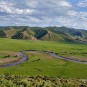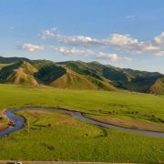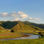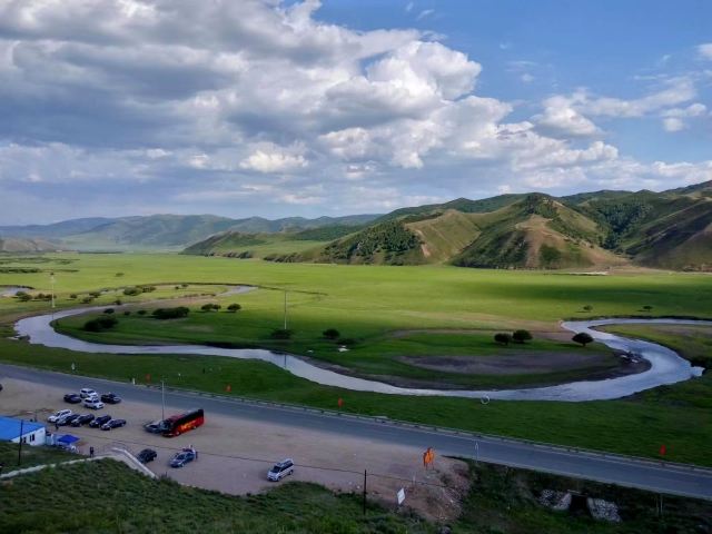 乌拉盖草原九曲湾景区地处大兴安岭山地和内蒙古高原的衔接处,位于内蒙古锡林郭勒盟乌拉盖管理区东部、乌拉盖湖景区东北侧,是有名的倒流河—乌拉盖河的截断流域,因其蜿蜒曲折尽显自然之美而得名“九曲湾”。