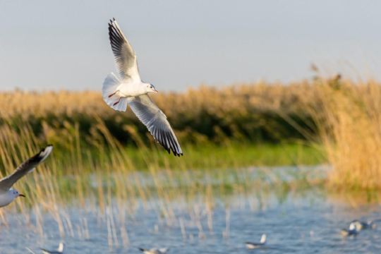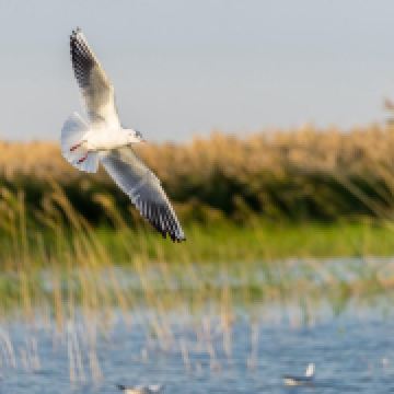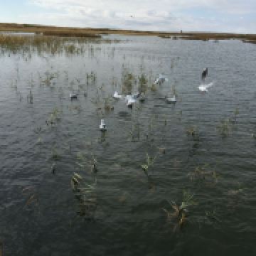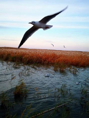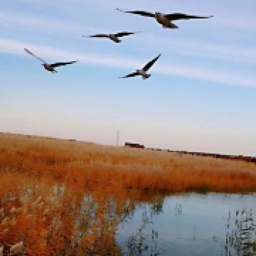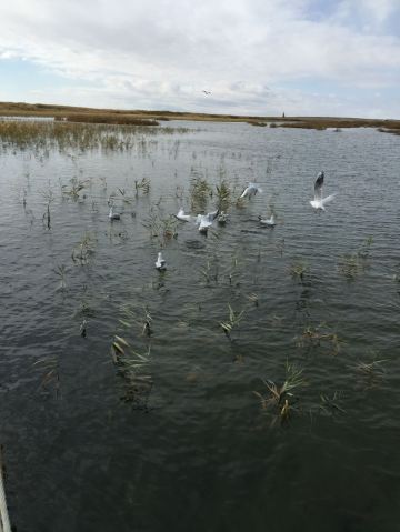 湖畔茂密的水草、提供了舒适的栖息地,湖中丰富的水生物、成就了不竭的食物链,展翅高飞的水鸟,造就着居延海一道道靓丽的风景线。