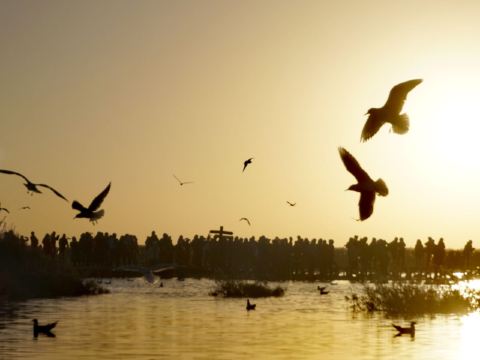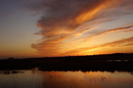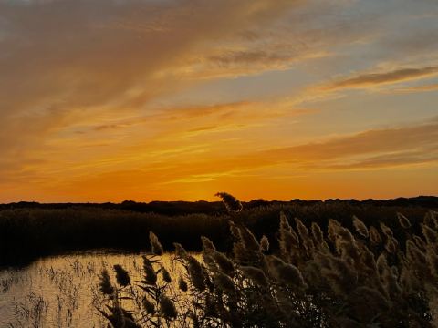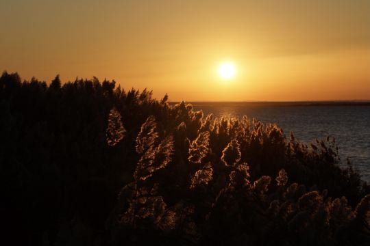 仅仅是海上日出其实没什么,因为开阔水面没什么芦苇,最多就是有点水鸟,也可以选择看日落,2号码头南侧有一水域在栈桥的西侧,可以拍出水上效果,而且还有芦苇,不过傍晚的气温也十分低,需要冬装才能御寒,摆渡车最后一班正好是太阳落下