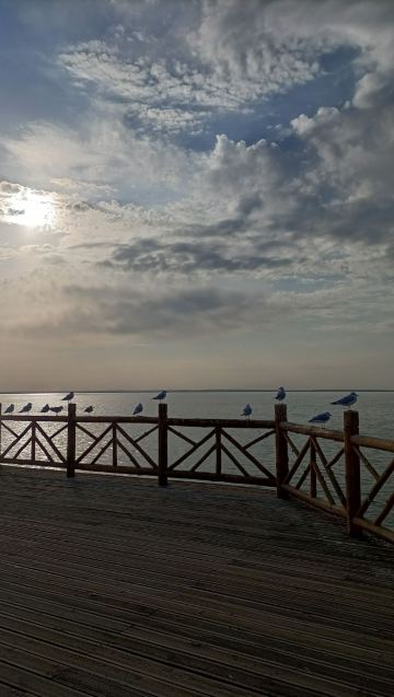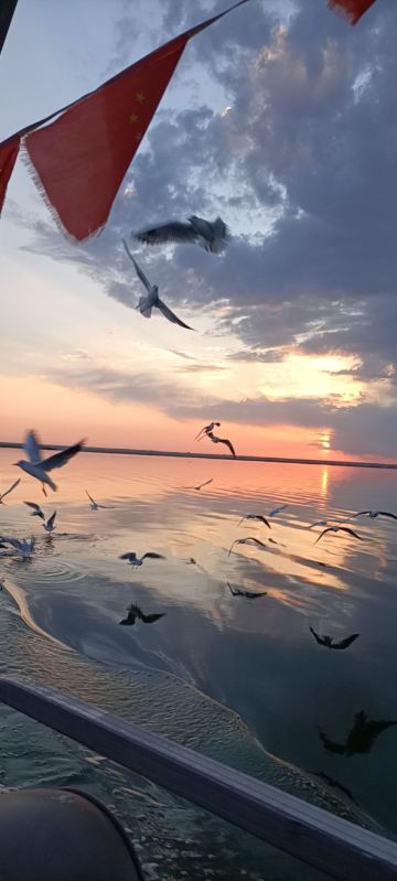一般选择在这里看日出,码头在湖的西侧,太阳会从湖上升起,有点像海上日出