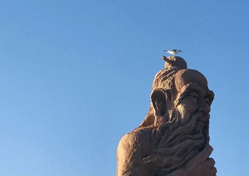 在居延海还有一个美丽的传说,说中国古代的伟人--老子,就是在这里得道升天的,所以为了纪念他还在这里建了一个雕像,既然是传说就没必要纠结其真假了。但如果是真的话,我也不奇怪,选择在这种风景秀丽的地方升天,绝对没有错呀