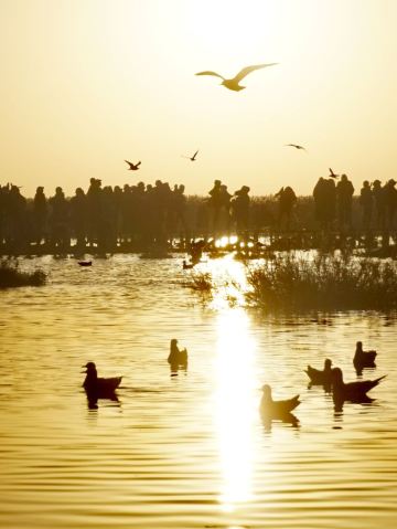 每当晨曦初露,水鸟伴着游客焦急地迎候旭日东升;一旦天空大亮,水鸟又辛勤地觅食、欢快地嬉戏。晶莹的水珠、剔透的翅膀…拍她千遍也不厌倦。