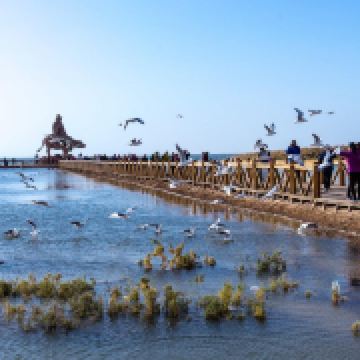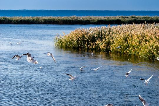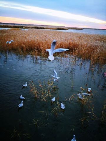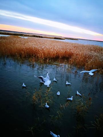 居延海的特色在于超大的湖面向海一样,大面积的芦苇丛和木栈道,以及各种水鸟