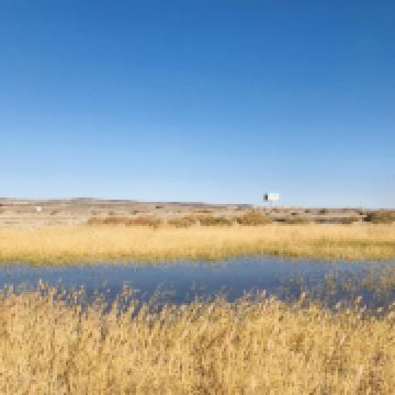 居延海,为内陆河-额济纳河(黑河)的尾闾湖。受上游供水的影响,湖泊面积时大时小、飘忽不定。1992年曾断流后彻底干涸,经大力恢复生态,2002年重新恢复波光粼粼的景观,2017年起,湖泊面积稳定在60平方公里以上,为近百年来最大。