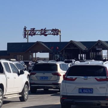 居延海离额济纳还有50多公里,日出一般在7点多,再加上排队买票的时间,所以最好是5点就要出发了,6点到景区门口,买好票进场,还要沿着木制的栈道走到湖边,也要半个多小时。这里的团队客很多,所以一大早已经是人山人海了。门票价格80元,带了观光车票,其实里面也不大,观光车票这个真心浪费。