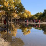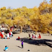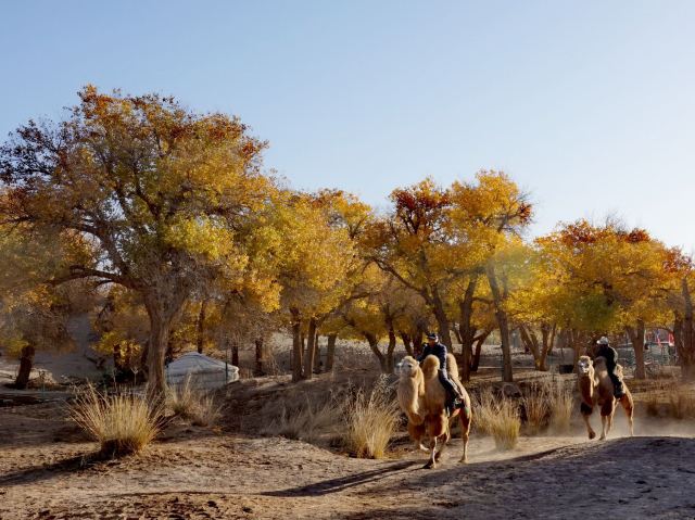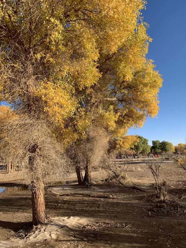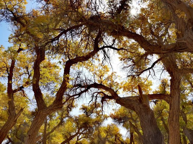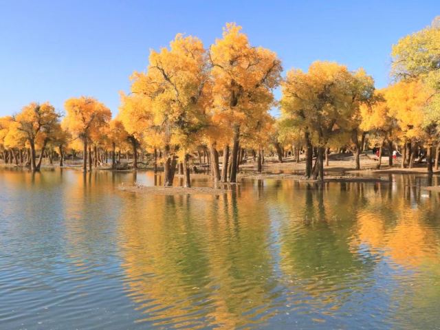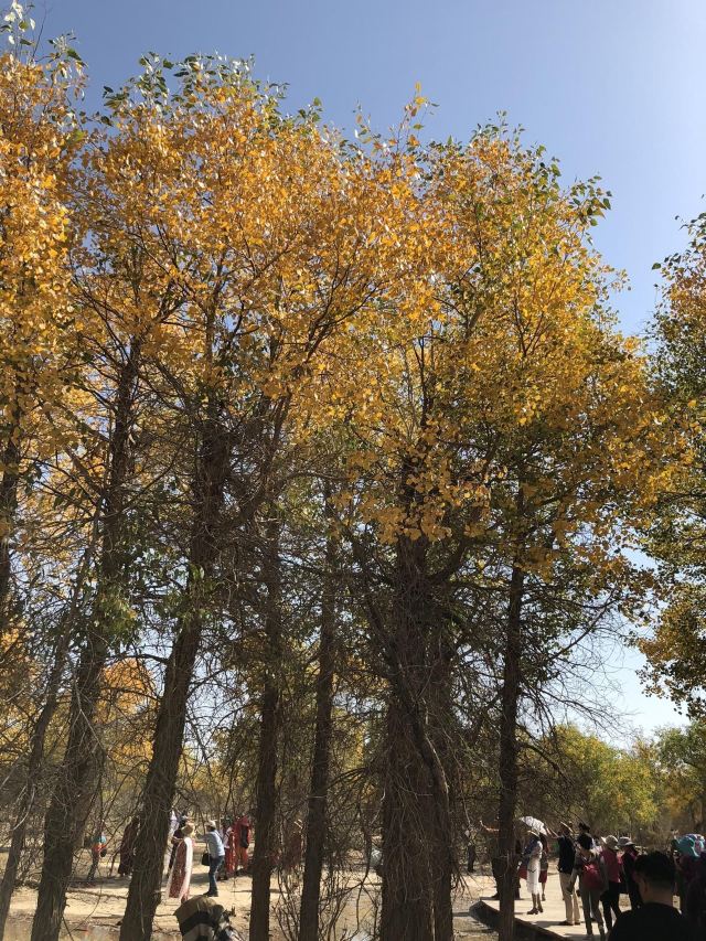 虽然景区一年四季开放,但胡杨树也许是用生命在诠饰美丽,较好的时节是每年的九月下旬到十月中旬,仅仅只有二十几天,特别是国庆黄金周,是胡杨树色彩尤为金黄璀璨的日子。