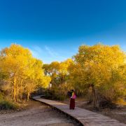 如果你来额济纳,请不要错过大漠戈壁风情。每年国庆节前后的两三周内,这里会举办胡杨节,节日期间,几十万游客从四面八方来到这个只有几万常住人口的小镇,观赏着绚烂耀眼的金黄色胡杨林和一望无际的茫茫荒漠。