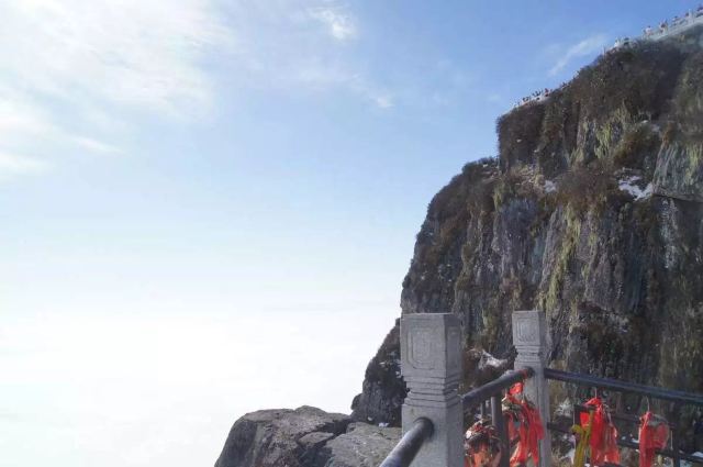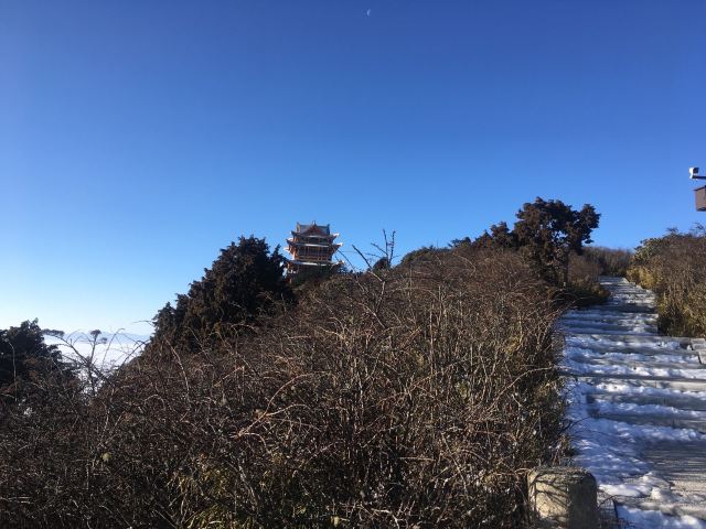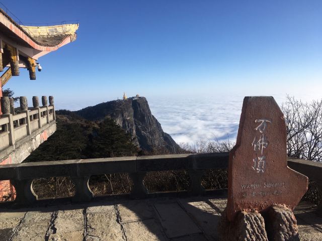 因为各种原因,金顶至万佛顶的轨道观光车暂时关闭,景区也不对外开放。个别游客会沿着轨道走上去,饱览壮丽的美景。但这样是非常危险的!不建议采用这样的方式游览,游客如今可以在金顶遥望万佛顶。
