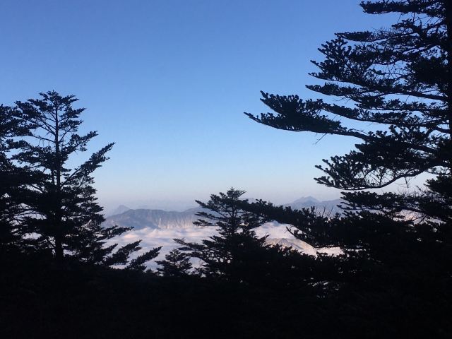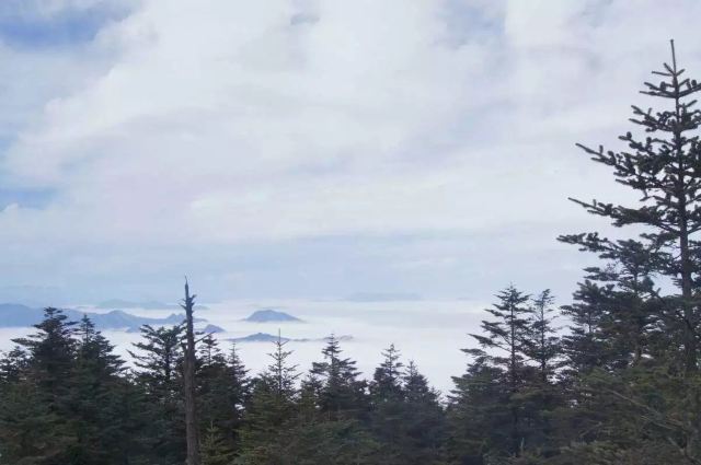万佛顶,距离金顶大约5公里,海拔3099米,周边都是原始森林。这里独立在高高的山崖顶端,众山如同万佛朝宗般环绕周边,顶下遍布着郁郁葱葱的原始森林。