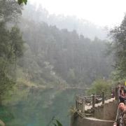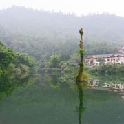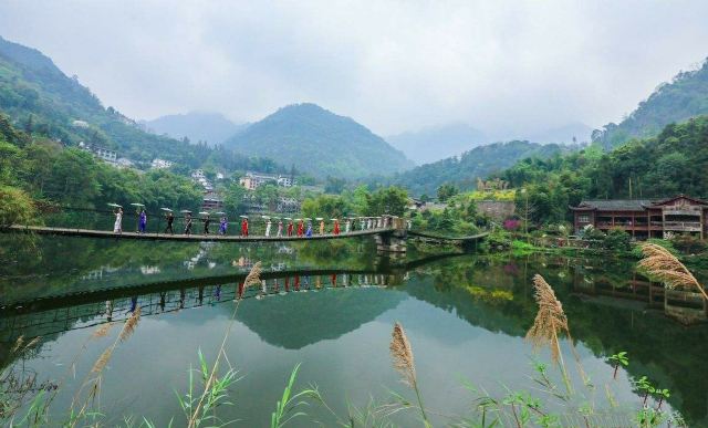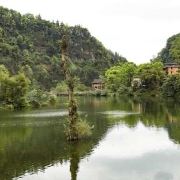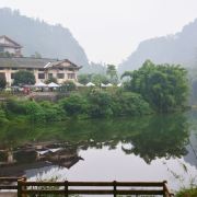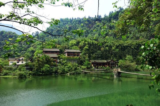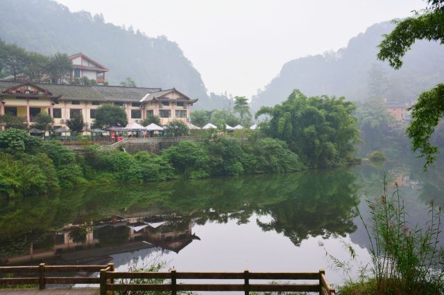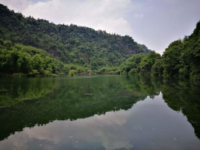清音阁附近的一个人工湖,湖水清澈,四面环山,处处都是郁郁葱葱,经常还有云雾缭绕,仙气很足的一个地方。因为这里植被茂盛,空气清新,每到夏季很多游客会来这里,住在附近的农家乐,避暑休闲小住几日。