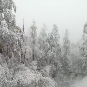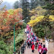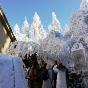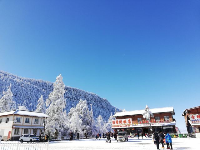 雷洞坪是景区观光车的终点站,从山脚下的报国寺客运中心,有班车直达这里。这里也是上金顶的必经之地,无论选择哪条线路游玩,都会经过这里。因为价格相对便宜,去金顶看日出的游客,前一天大多住宿在这里。这里海拔2430米,位于连望坡上,白云亭至接引殿之间。从华严顶爬到这里一路会经过全国最大的高山杜鹃保护区。这里的积雪期比金顶还长,还经常笼罩在缥缈雾气中。从这里到金顶索道(接引殿)有1.5公里路程,步行大约0.5-1小时。附近主要有2个景点,一个是猴区,一个是滑雪场。这里的猴子比清音阁猴区的猴子文明,但也不要去招惹它们;滑雪场只在冬季开放。