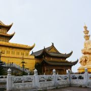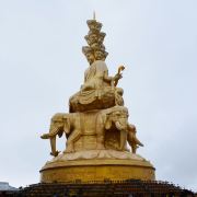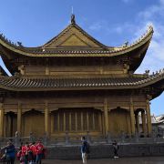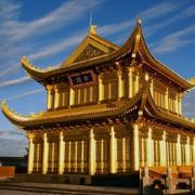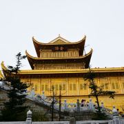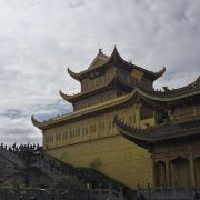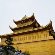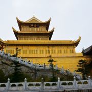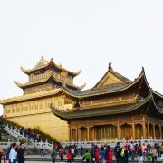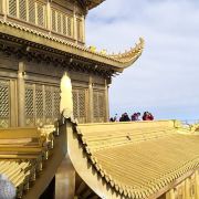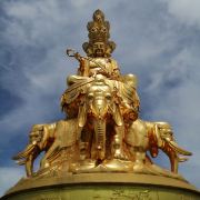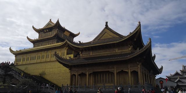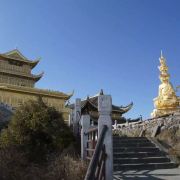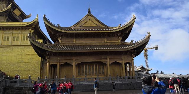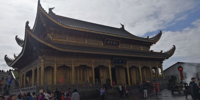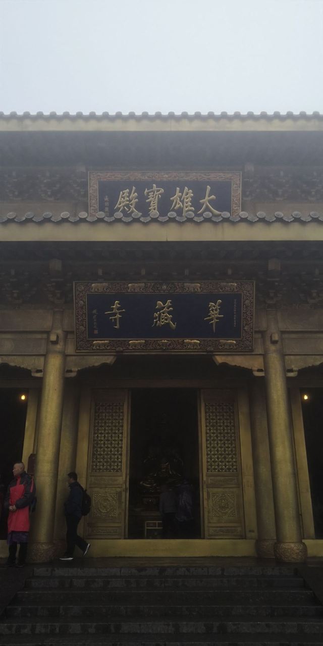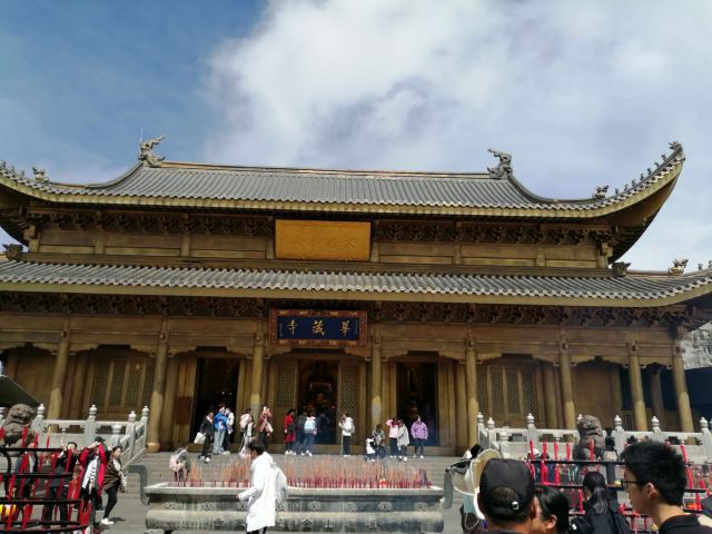 华藏寺是峨眉山高的寺庙,位于金顶的中心。寺庙的建筑使用了大量的铜,在阳光的照耀下,发出耀眼的光芒。寺庙依山势而建,高处是普贤殿,也被称为金殿或金顶,从而坐在的山峰也被称为“金顶”。华藏寺始建于东汉,但如今所建的寺庙是近年来复建的,如今的寺庙香火依然旺盛,吸引了众多的信众前来敬香。华藏寺前,就是的四面十方普贤像。